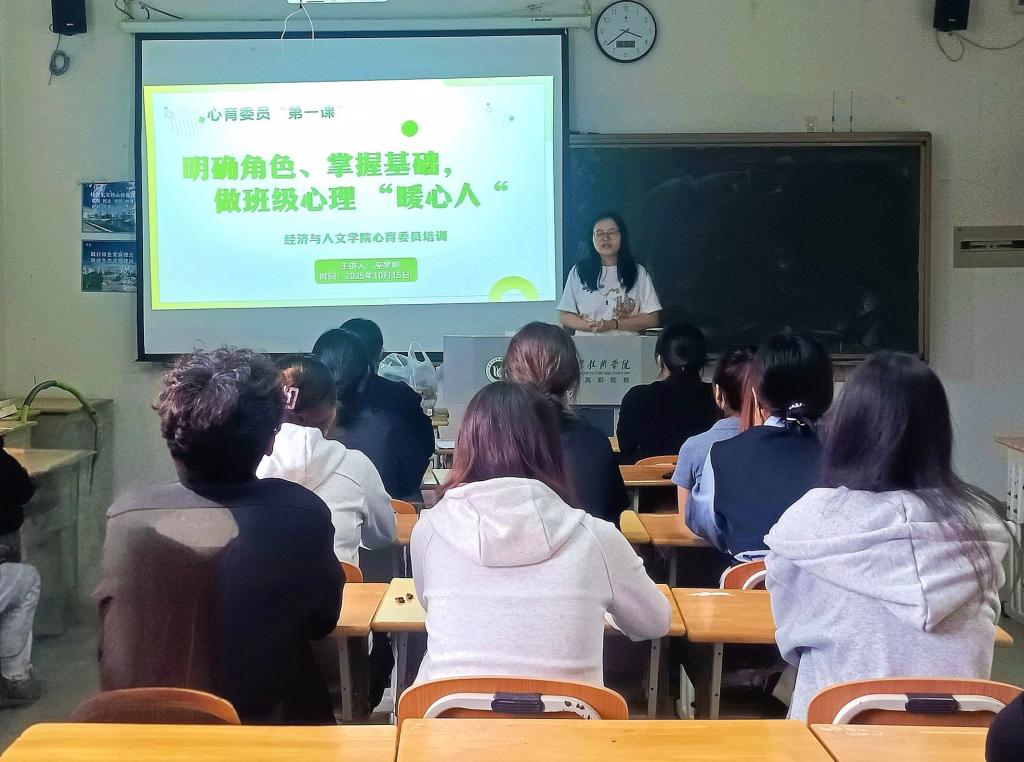 为进一步加强班级心理健康教育工作,充分发挥心育委员在班级心理建设中的积极作用,帮助新任职的心育委员快速适应角色、掌握基础心理健康知识,经济与人文学院于2025年10月15日在文科楼207教室成功开展心育委员“第一课”专题培训。本次培训由学院辅导员巫梦婷老师主讲,各班级心育委员参与培训。