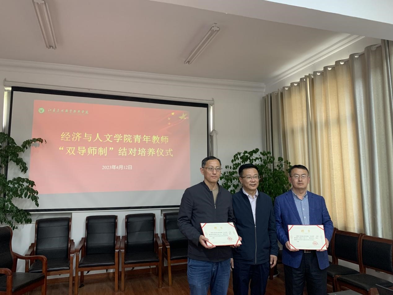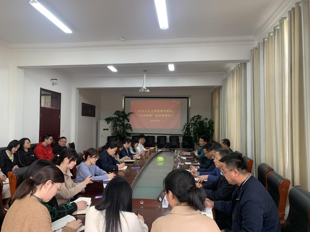 4月12日下午,我院青年教师“双导师制”结对培养仪式在经文楼201会议室隆重举行。校党委委员、副校长毕德全,经济与人文学院党政负责人,受聘校内外导师代表及结对培养的青年教师参加了此次仪式。